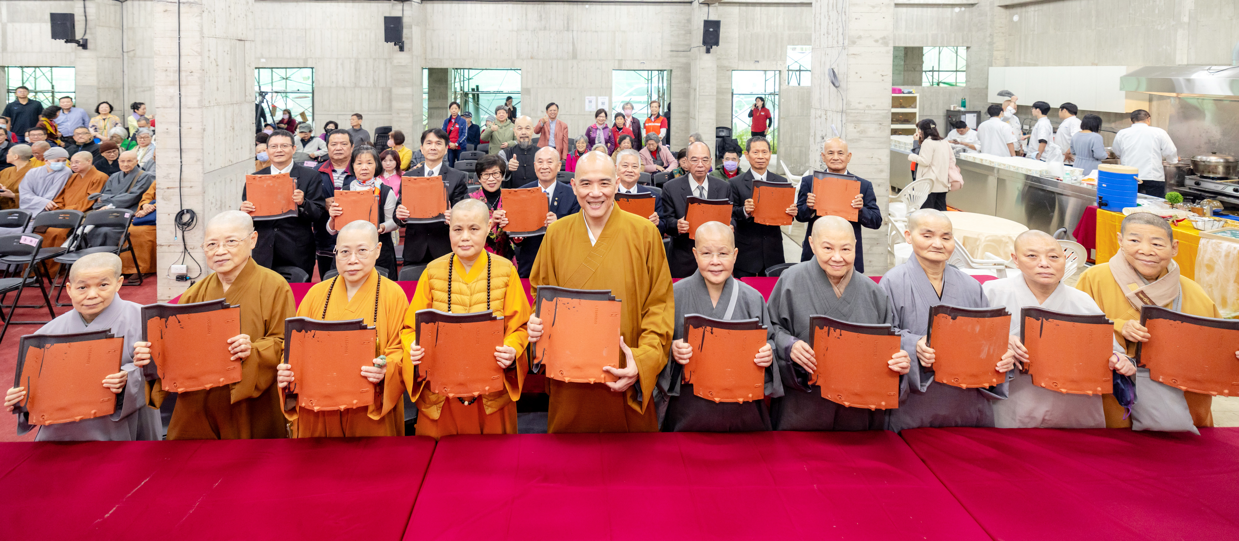 11月22日上午10點,宜蘭海印道場舉辦「華嚴樂壇II流行音樂AI影像版首映發佈會暨海印道場秋冬養生蔬食推廣文藝節」,今日活動以「養生‧文藝‧創新」為主軸。一早海印道場即湧入大批人潮,來自各地諸山長老、法師、善男子、善女人共襄盛舉;捐瓦簽名處熱鬧非凡,大家興奮地在瓦片上留下姓名,在建寺功德榜上留下永恆印記,寺廟傳承萬年,您的功德亦青史傳揚。感謝您的熱情響應,為文藝節增添無限光采。 今日舉辦《華嚴樂壇II流行音樂AI影像版》首映發佈會,以創新科技結合佛教音樂藝術,展現華嚴宗的智慧與現代視聽美學。節目中運用AI音樂與影像生成技術,呈現「事事無礙」的壯闊境界。當影像緩緩展開,視線即被莊嚴的影像感動,令與會者沉浸在法喜之中,受到熱烈地回響。 感謝由新北市智光商工師生響應的「養生蔬食饗宴」,提供各類餐點,琳琅滿目,有中餐、西點、咖啡,堪稱中西合璧;不僅滿足您的味蕾,更是溫暖您的心。文藝節有:太極拳團隊展演、茶道演繹、秋冬養生講座等精采節目。活動在下午4點圓滿結束。