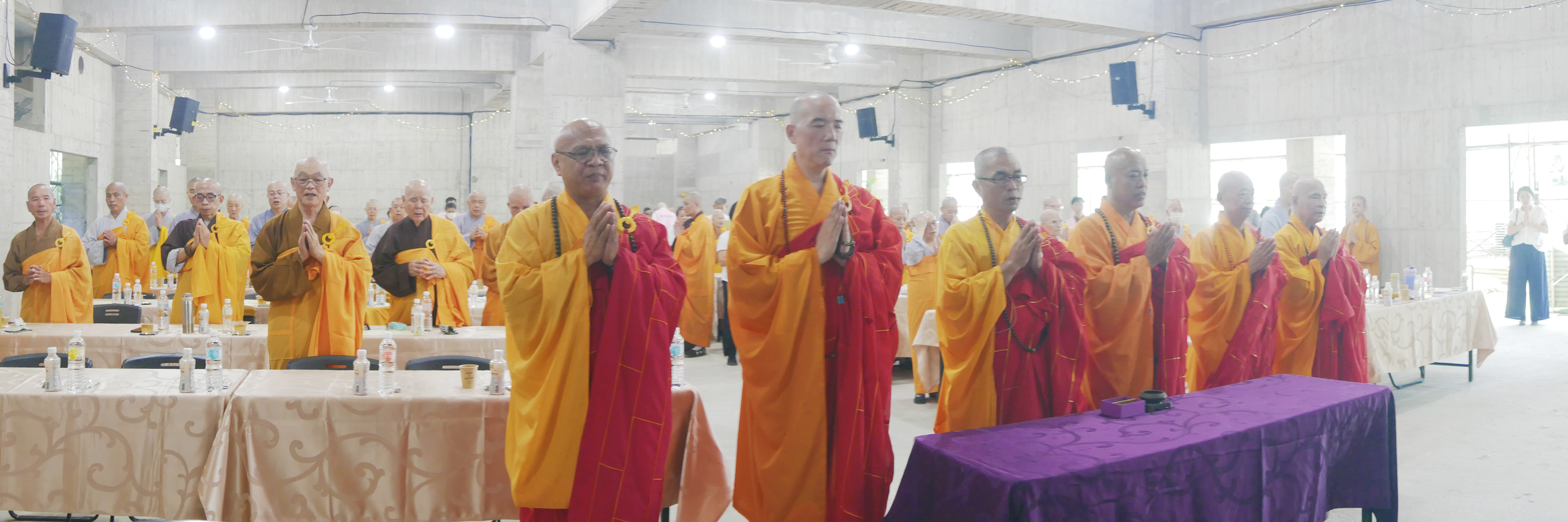 10月1日上午8點30分,臺北華嚴蓮社宜蘭分社海印道場啟建「盂蘭盆祈福報恩供佛齋僧大法會」,恭請孔雀明王寺住持慈傑大和尚率領60位法師,誦持《孔雀明王經》一堂,加行孔雀明王法,為樂助海印道場捐款善信功德主祈安增福迴向。於11點,佛前大供;供佛、齋僧等殊勝法事。感謝諸山長老、法師,地方政府長官、護法信眾齊聚一堂,共同見證莊嚴隆重的盛會。 下午1點,「華嚴蓮社宜蘭分社海印道場籌建委員會及顧問團」正式成立,由董事長賢度法師頒發17位籌建委員及顧問聘書,以表達誠摯感恩之情。宜蘭縣議會張勝德議長擔任委員兼顧問;由喜互惠股份有限公司朱儒文董事長擔任委員兼護法會之會長,以及佛光大學健康與創意蔬食產業學系顧問團。 臺北華嚴蓮社成立七十多年以來,在臺灣建立完整的教學及修行體系,自當傳承華嚴宗法、延續命脈。興建海印道場是為了承接這個永續發展的任務,將打造一個能與在地社區共生共榮的佛法基地。不僅為僧團培育中心,亦回應當代都市環境面臨少子、高齡化社會轉型,將逐步發展成為推廣教育功能與現代弘法平臺。未來海印道場培養的僧團,故能支援華嚴蓮社四大志業的推動,道場永續、世代相傳。 海印道場將帶動周邊鄰里發展,文化商旅、蔬食生態共榮圈,創建共贏互利的關係。協作有機蔬果、養生食材植栽園區、培養有機花卉、研發各式蔬食茶點、連結餐飲休閒產業鏈……等等商業經營管理實體產銷市集。透過沉浸式投影多媒體文創:將傳統工筆畫之藝術涵養,詮釋佛像的莊嚴,並融合AI創作開發的巧思,演繹《華嚴經》中的故事,藉由高科技的奧妙與佛教藝術氛圍,呈現出生動的畫面,及管弦樂團的演奏,展現華嚴文化的魅力。加之AI影像及音樂生成工具輔助,突破了2D、3D動畫的局限,更加生動活潑的為觀眾帶來新的視聽感受,增強華嚴文化的吸引力和傳播效果。讓觀眾更容易認識華嚴、走入華嚴。 在未來永續發展的世代中,帶領大眾深入經藏、廣學多聞以自利利他。以佛教的文化精神素養,及運用現代化科技的方式,提供學佛大眾最適切的引導。 ▲盂蘭盆法會,六位主法和尚。