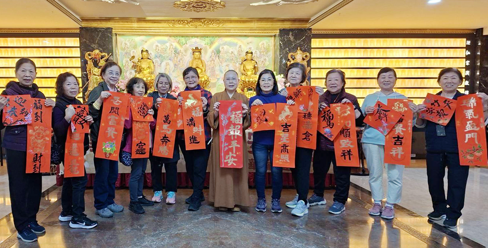 點,臺北華嚴蓮社於一樓大廳舉辦「寫春聯